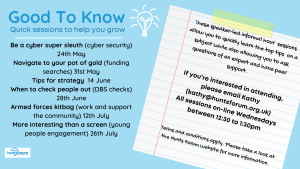Be a cyber super sleuth (ways to protect yourself, your community and your organisation from cybercrime) Wed 24th May – 12.30 pm – 1.30 pm online